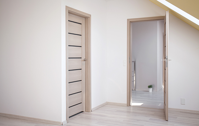 部屋と部屋をつなぐ開口部にも建具は使われます。こちらに鍵が付いてないことが多いのは、侵入者を遮断することが目的ではないからです。
