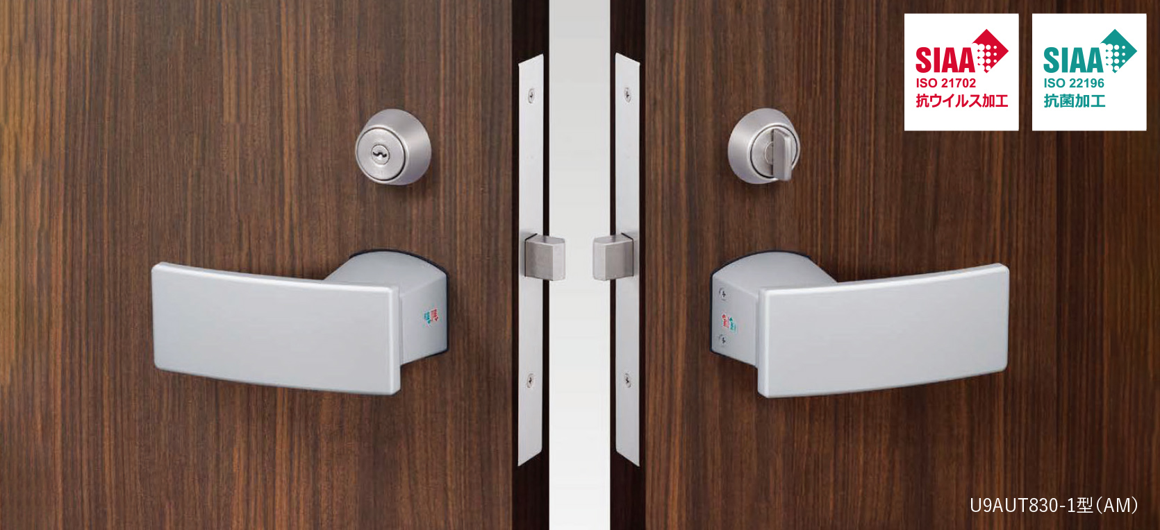 (注)抗ウイルス・抗菌塗装の範囲は、プッシュプルハンドルのプレート部分とサムターンのツマミ部分のみになります。台座部分は、通常仕上(抗ウイルス・抗菌なし)になります。