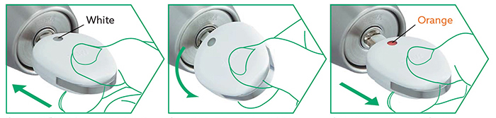 お使いのキーに取り付け、カギを操作すると表示窓の色が変わるので、視覚的にカギの開け閉めの状態をチェックできます。
