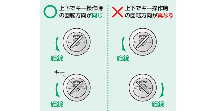 ※キー操作時、2つのカギの回転方向が上下で異なる場合は使用できません。