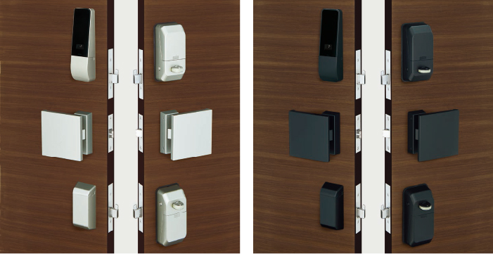 キーまたはサムターンで上部の電気錠を施錠すると、下部の電気錠も同時に施錠します。扉の上下ユニット間を、無線化(BLE)しているので、配線レスでスマートな外観を実現しています。※2ロック仕様のみ対応