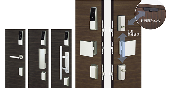 2ロック仕様および自動施錠仕様は、上下ユニット間、上部ユニット・ドア開閉センサ間の連動をBLE(Bluetooth® Low Energy)によって無線化し、配線のないスマートな外観です。