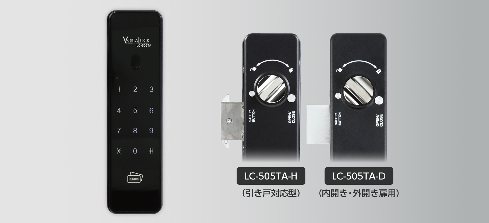 引き戸、スライドドアに対応する「LC-505TA-H」と、内開き・外開き扉に対応した「LC-505TA-D」の2タイプを用意。
