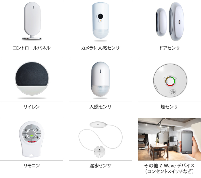 ユーザのライフスタイルに合わせて、人感センサ・防犯カメラなど各種デバイスを自由に組み合わせて、つなぎ合わせることが可能な、「次世代型コンビネーション防犯」*IoT製品です。デバイスは、セキュリティ性の高い独自無線規格(Z-Wave)を採用。両面テープで取り付けるだけで、どなたでもお手軽に本格的な防犯対策を実現します。